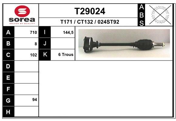 Длина [мм]: 710 Внешнее зацепление со стороны колеса: 8 Диаметр 1 [мм]: 94 диаметр 2 (мм): 144,5 Тормозная динамика / динамика движения: Для автомобилей без ABS