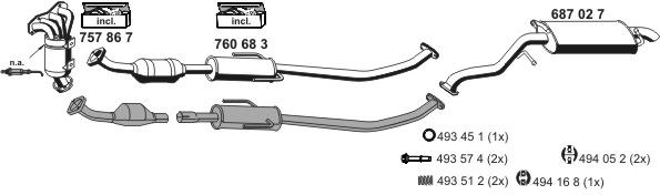 Сторона установки: спереди Диаметр: 0 мм Вариант оснащения: 00000000000000000761 Вес: 1,1 кг Длина: 700 мм Система выпуска ОГ: для среднего глушителя выхлопных газов