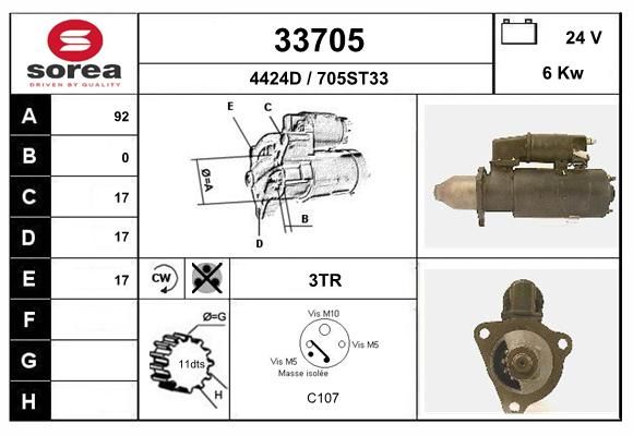 Мощность стартера: 6 кВт